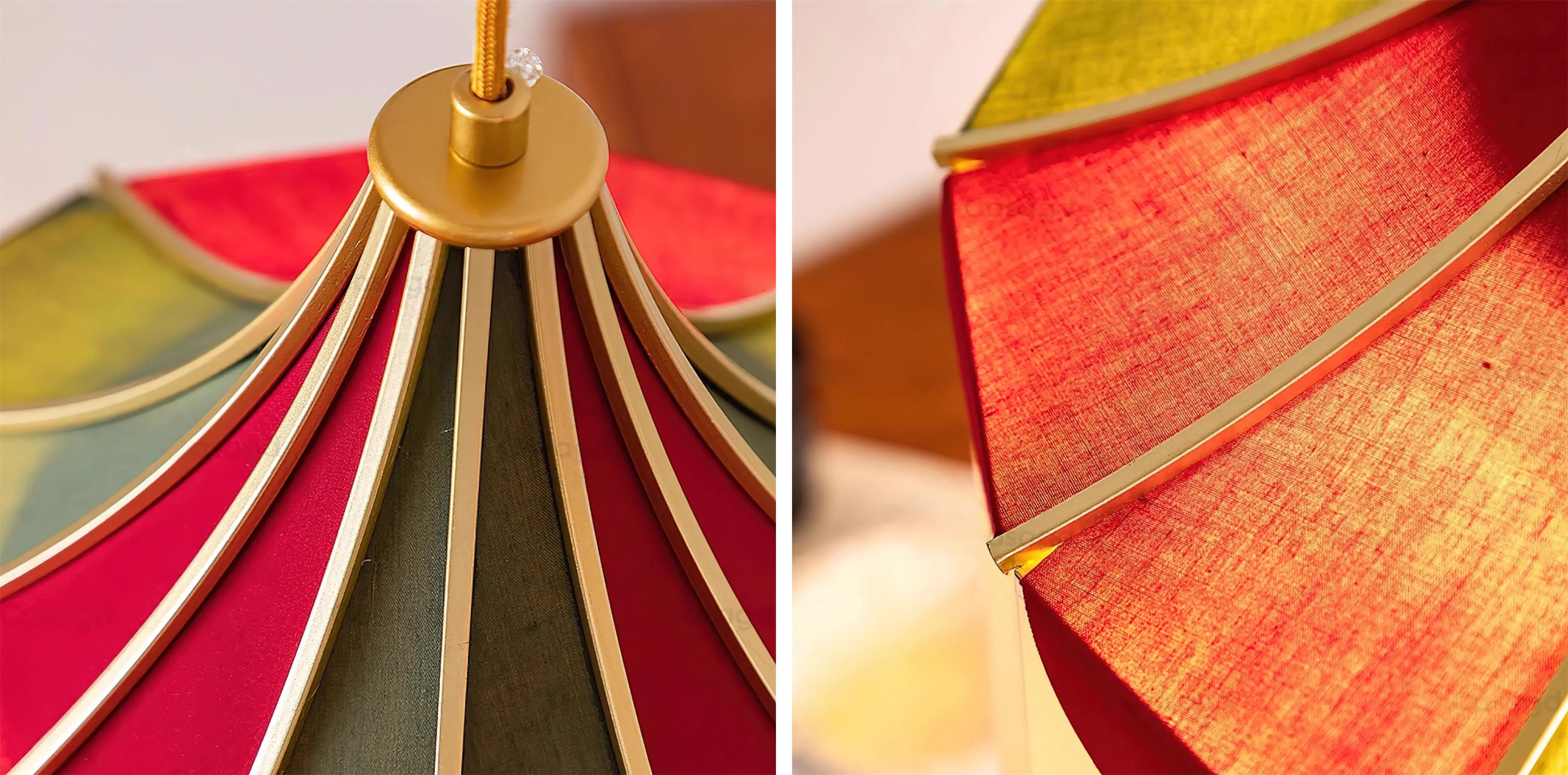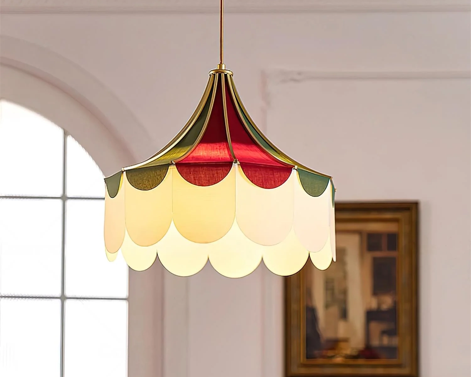 The Circus Fabric Pendant Lamp adds a lively yet refined touch, transforming any room into a space full of warmth and character. Inspired by the nostalgic charm of vintage circus tents, its scalloped edges and vibrant red, green, and cream fabric panels strike the perfect balance between playfulness and elegance, making it a true statement piece for dining rooms, living spaces, or entryways.