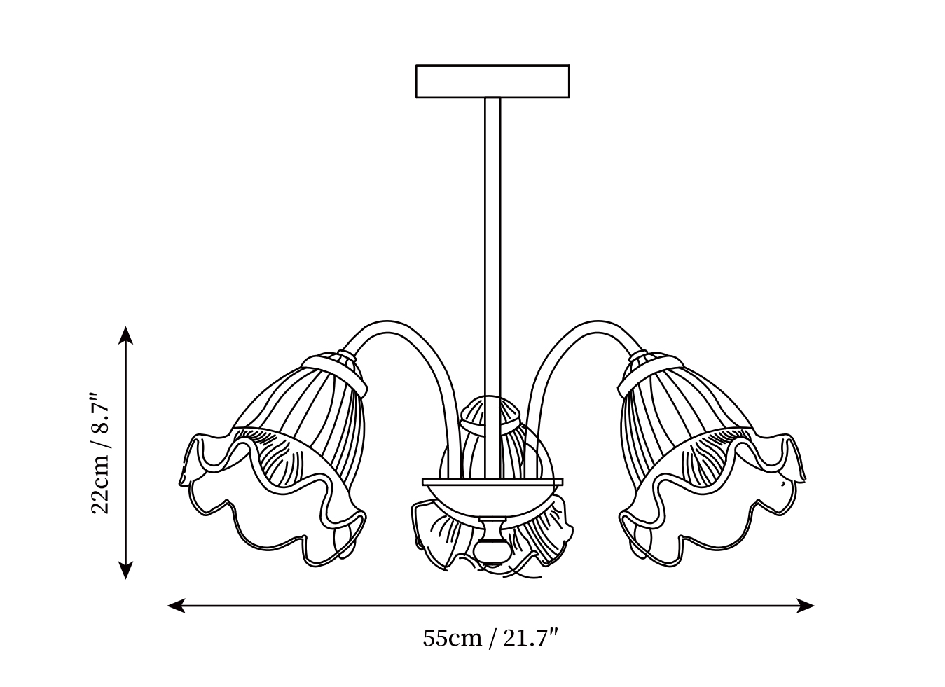 3 heads ∅ 21.7″ x H 8.7″ / Dia 55cm x H 22cm