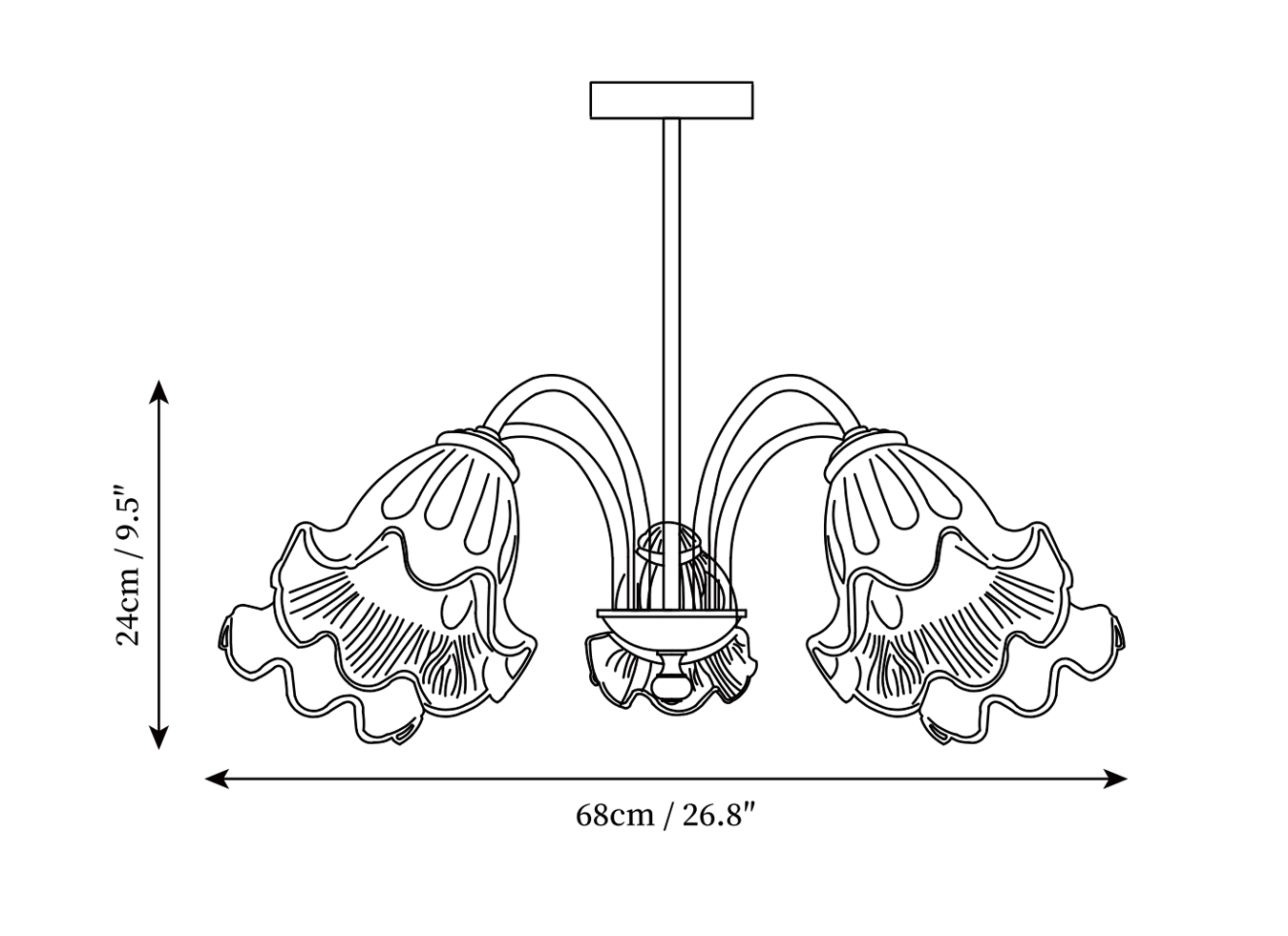 5 heads Size: Dia 68cm x H 24cm / ∅ 26.8″ x H 9.5″