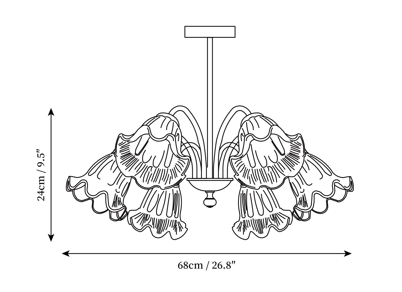 6 heads Size: Dia 68cm x H 24cm / ∅ 26.8″ x H 9.5″