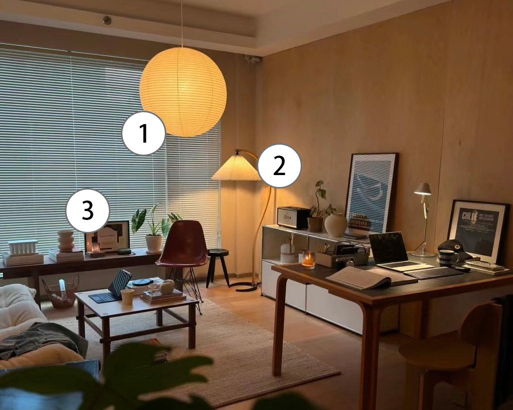 - Bedroom🛏: Use warm white or tri-color adjustable lights, with bedside lamps at 2800K yellow light.
