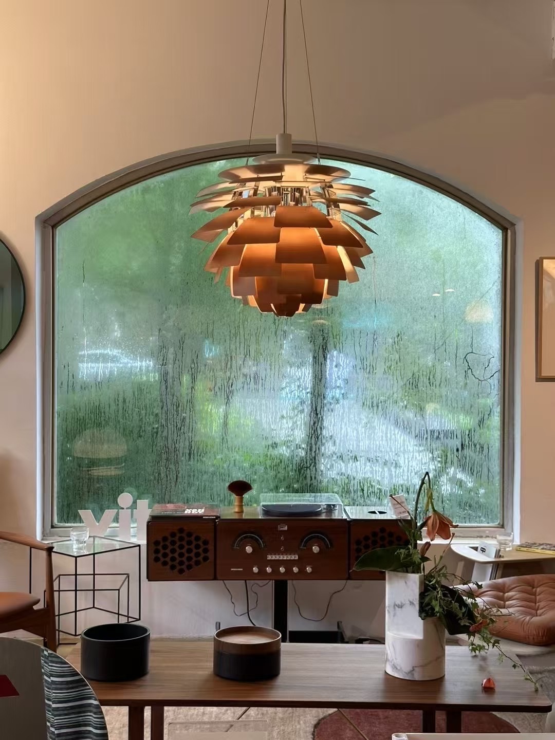 The PH Artichoke was made to solve glare, not just to decorate. Its design shows a key idea of Scandinavian modernism: lighting should serve human comfort first. Form then follows function.