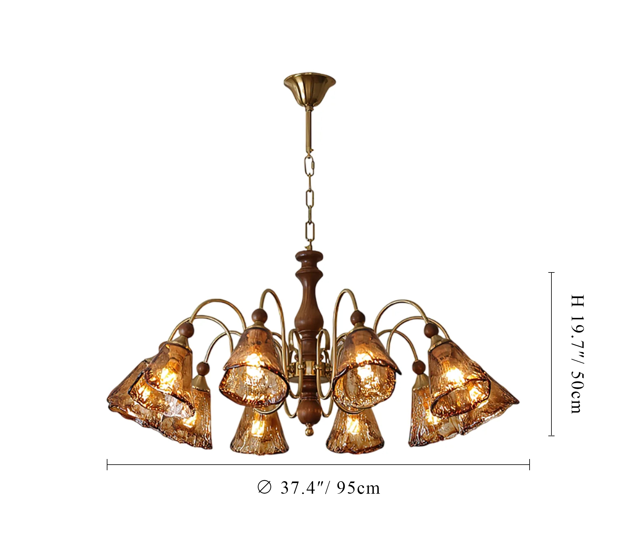 8-Lights: ∅ 37.4″ x H 19.7″ / Dia 95cm x H 50cm