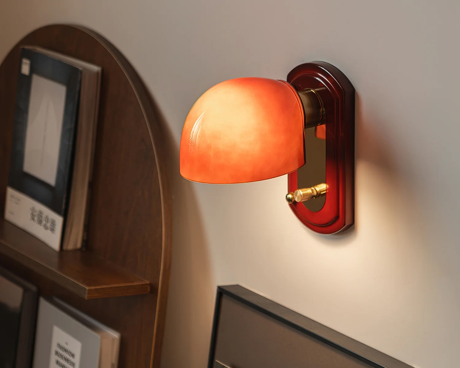 The Lolita Wall Lamp strikes a refined balance between vintage charm and modern elegance. Its dome-shaped lampshade, finished with a rich glossy surface, pairs seamlessly with a sleek polished backplate for a sophisticated look. Emitting a warm, gentle glow, it creates a cozy and inviting atmosphere—perfect for bedrooms, living rooms, or hallways.