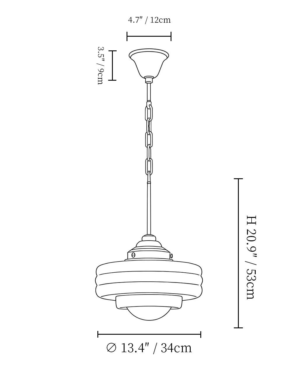 Model B: ∅ 13.4″ x H 20.9″ / Dia 34cm x H 53cm