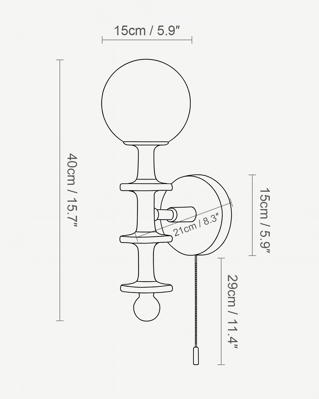 Control: Compatible with common wall switches (not included). Also equipped with a pull chain for convenient on and off.