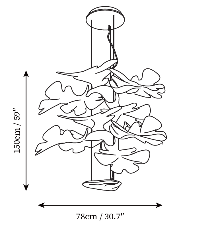 Materials: PMMA/Polished Aluminum (Lighting Unit)/Transparent (Leaves)