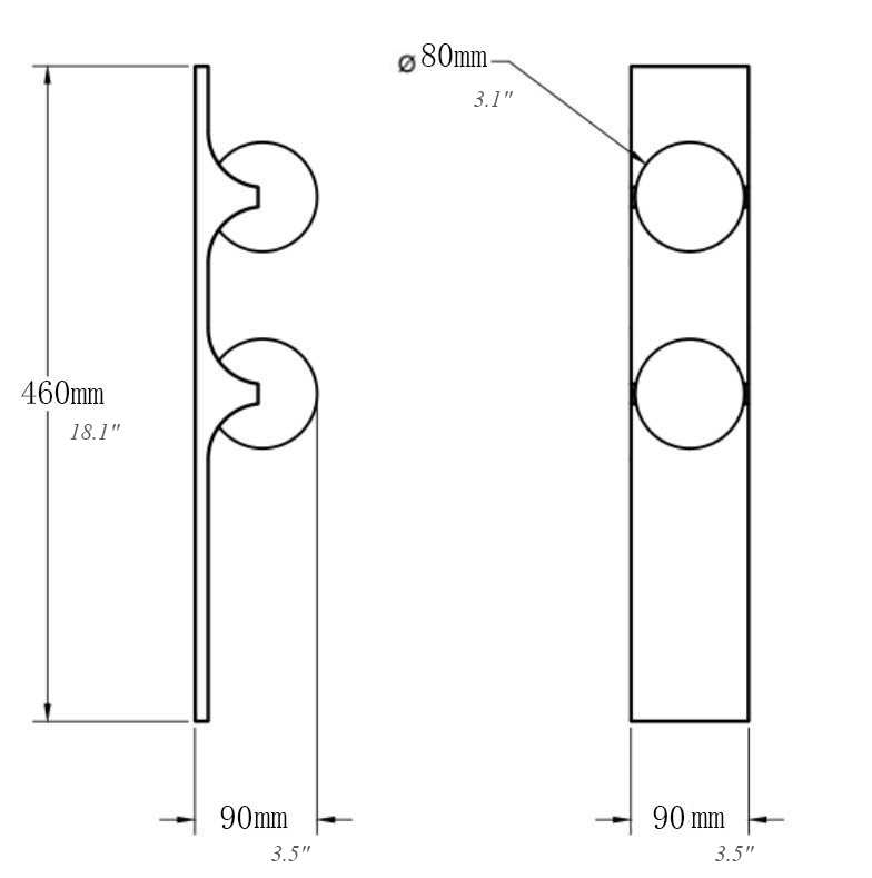 Double-head Size: L 9cm x W 9cm x H 46cm / L 3.5″ x W 3.5″ x H 18.1″