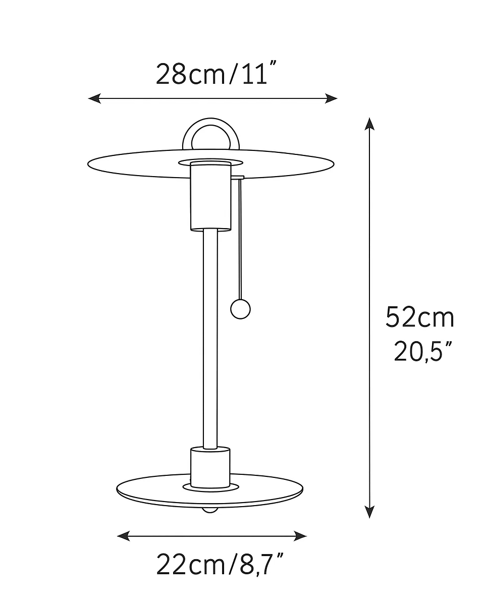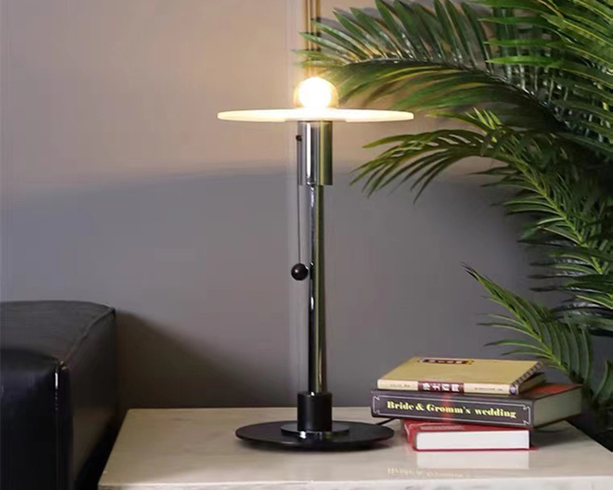 nspired by the elegance of planetary orbits, the Orbit Glow Table Lamp combines sleek modern design with a warm, ambient glow. Its disc-shaped glass shade floats above a polished metal stem, creating a captivating halo effect when lit. The convenient pull-chain switch adds a playful tactile element, while the minimal silhouette fits seamlessly into contemporary or retro-inspired interiors. Perfect for desks, side tables, or nightstands, it’s a statement piece that illuminates with both style and charm.