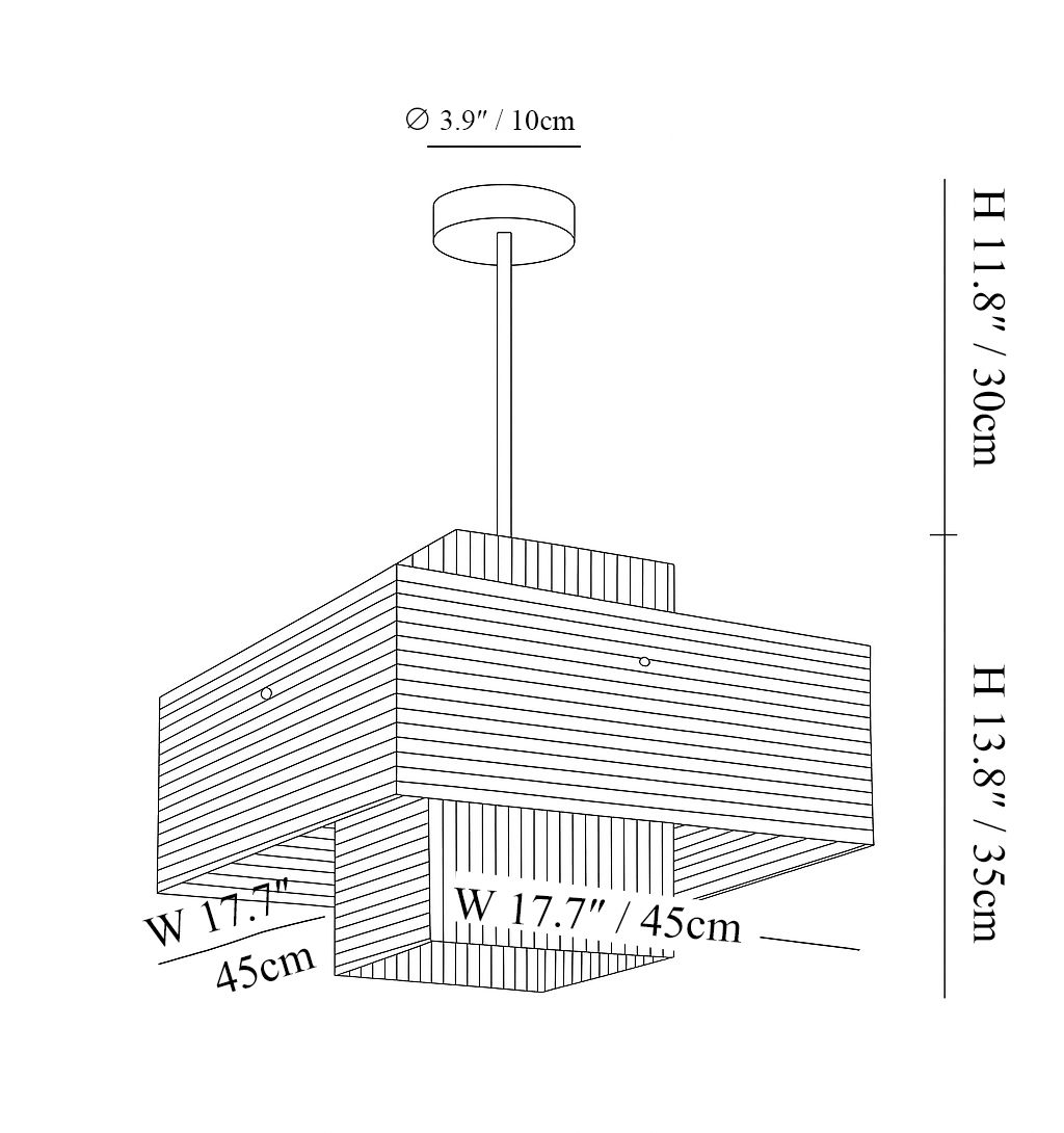 W 15.7″ x W 15.7″ H 25.6″ / W 45cm x W 45cm x H 65cm