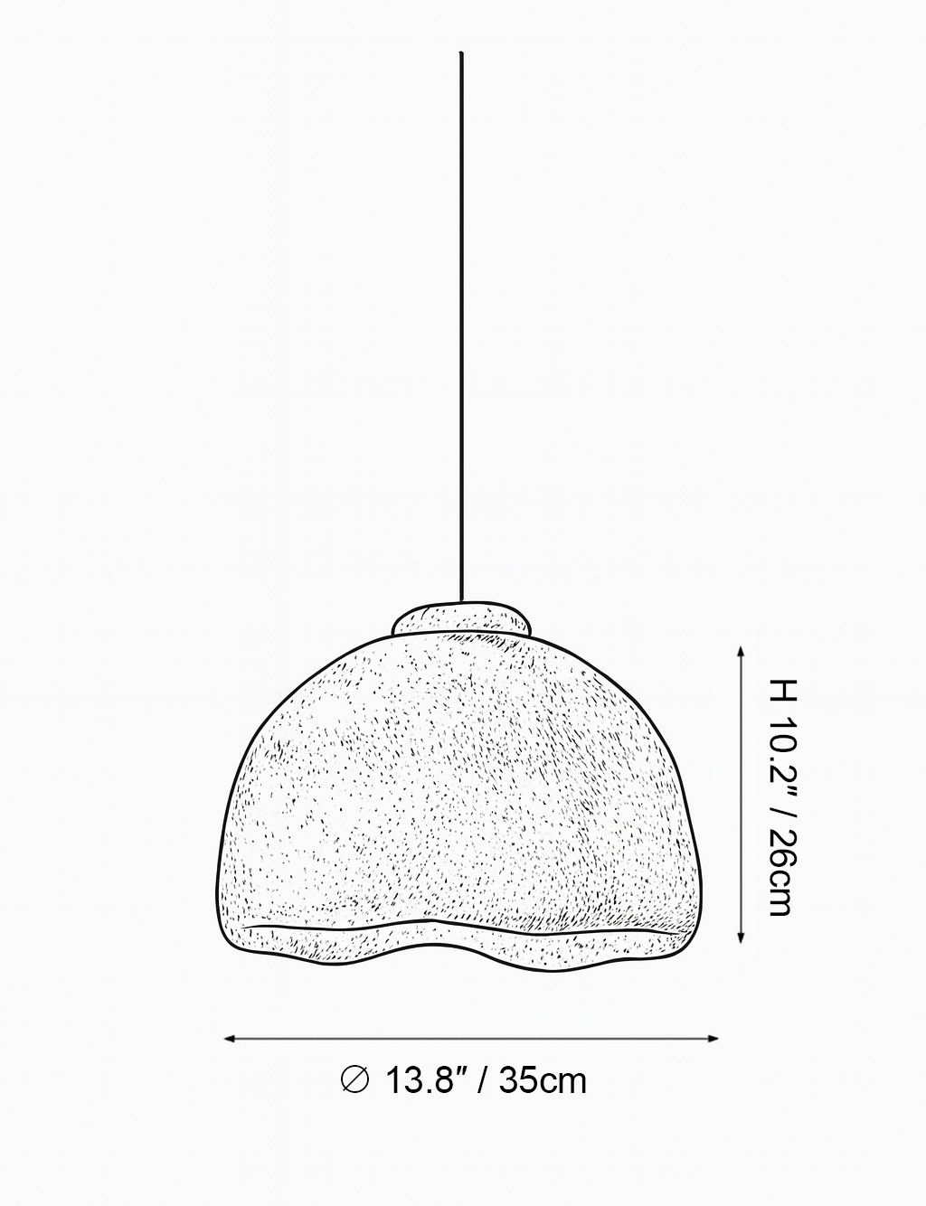 Hand-shaped from high-density polystyrene, each shade carries subtle textures and organic variations that echo the essence of wabi-sabi aesthetics. The sculpted form feels calm, grounded, and tactile, while the warm downward glow adds gentle ambiance to kitchens, dining areas, and serene living spaces.
