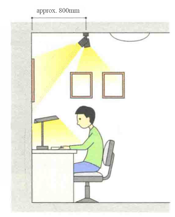 - A daylight-type spotlight or adjustable task lamp can be installed about 800 mm above the desk surface.