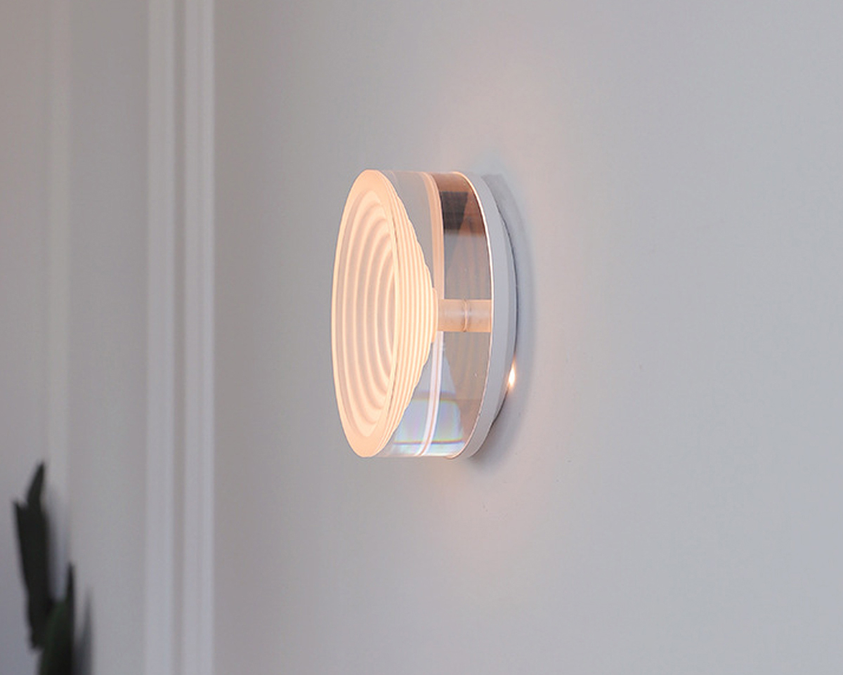 Halo Ripple Wall Sconce features a clean circular form with a softly textured surface that diffuses light evenly and gently. The layered design creates a subtle sense of depth, allowing light to radiate outward in a calm and balanced way.