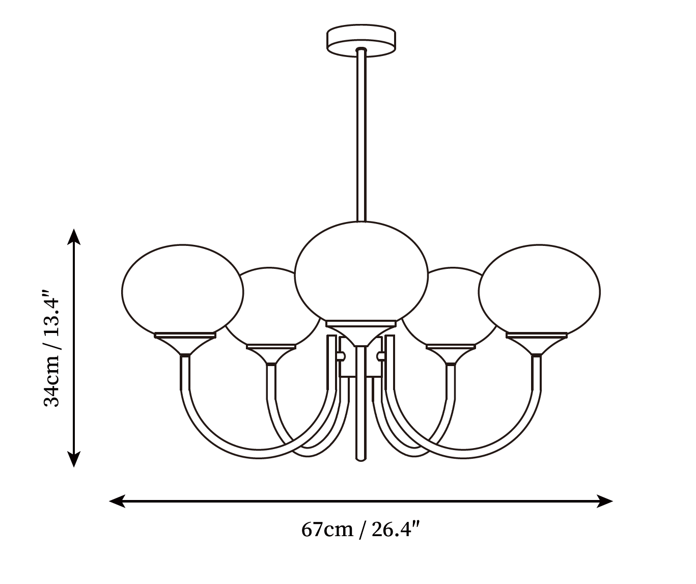 5 heads ∅ 26.4″ x H 13.4″ / Dia 67cm x H 34cm