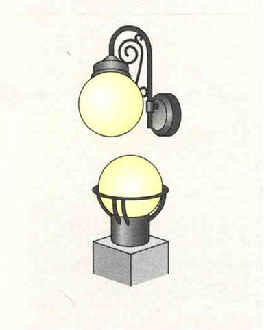 - Door post lamps, downlights or projector lamps outside the entrance, garden lamps, etc., with a variety of lamp shapes.