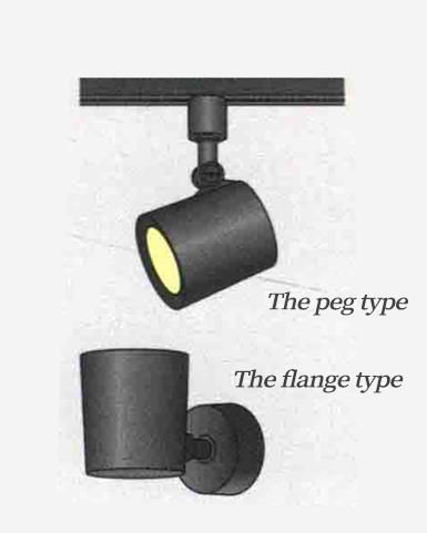 - There are two types: the peg type, which is mounted on a rail (trunking) for lighting, and the flange type, which is mounted directly on the ceiling or wall.