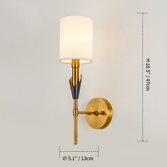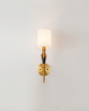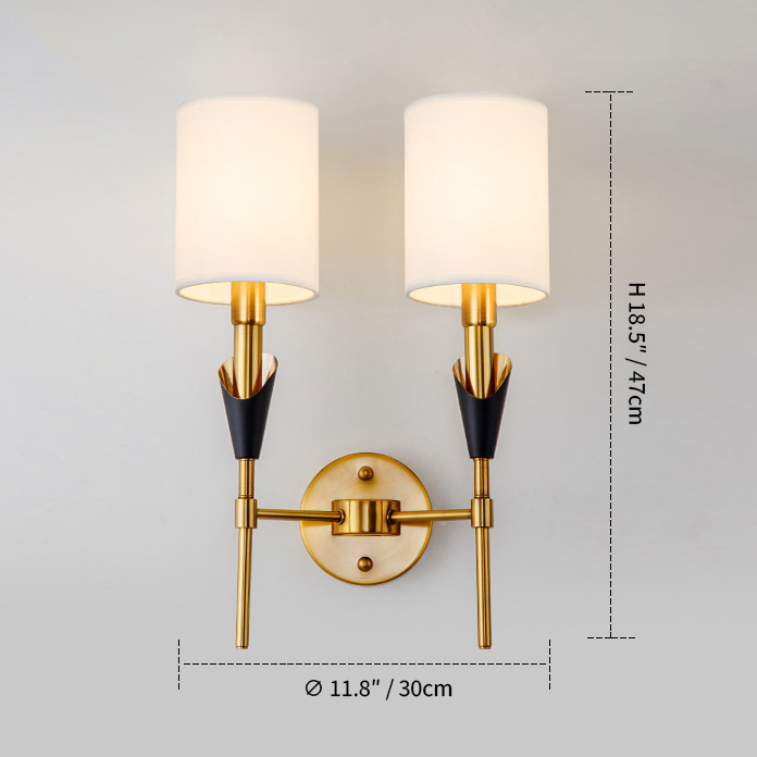 A refined balance of warmth and structure. The Aurelia Wall Sconce pairs a slender brass frame with a soft fabric shade, creating a gentle, diffused glow that feels calm and composed. A subtle black accent at the stem introduces contrast and depth, lending the piece a quiet architectural character.