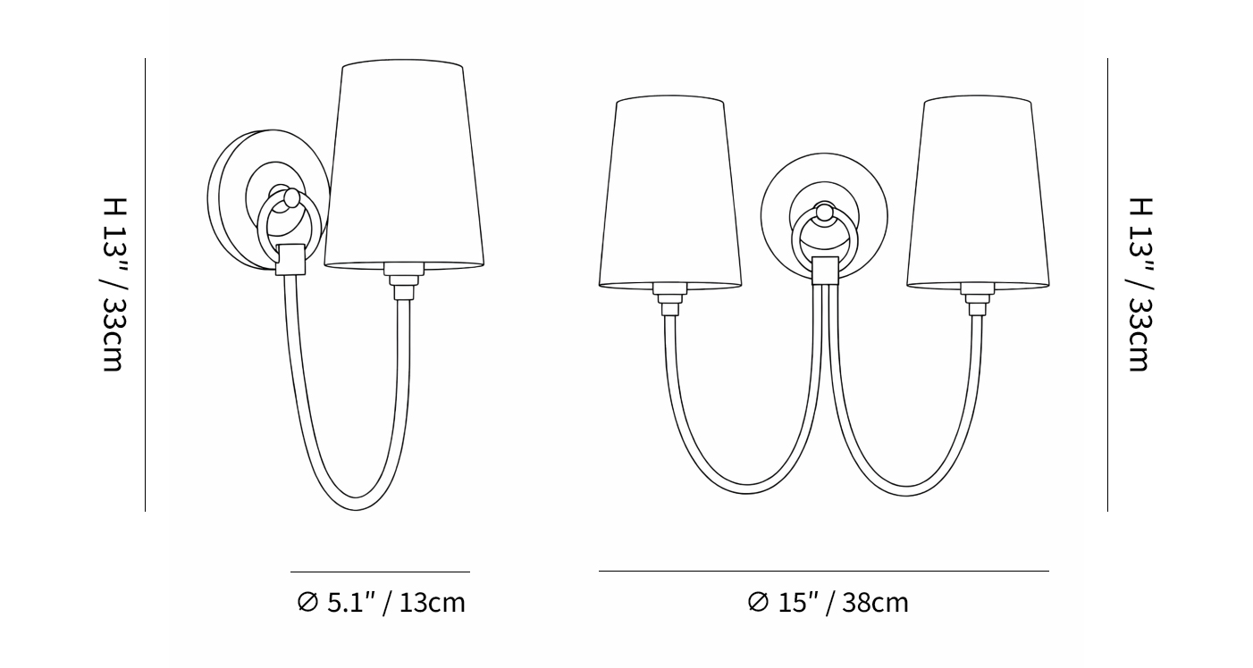 Topped with tailored fabric shades, the light is softly diffused, offering warm and comfortable illumination. The circular backplate and subtle ring detail introduce a quiet decorative accent while maintaining a clean, balanced profile.