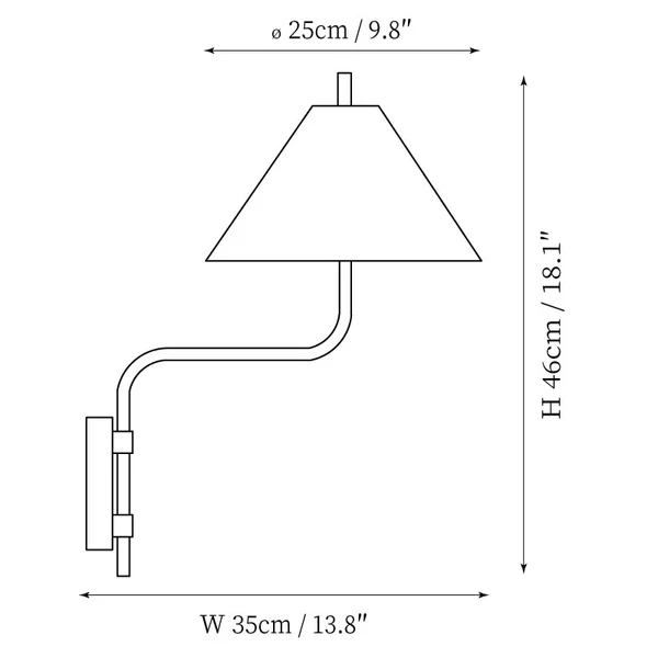 With its graceful silhouette and refined brass body, the Elan Wall Lamp embodies timeless elegance. The gently bent arm creates a sense of movement and balance, while the conical shade casts a soft, focused glow, perfect for bedrooms, hallways, or reading corners.