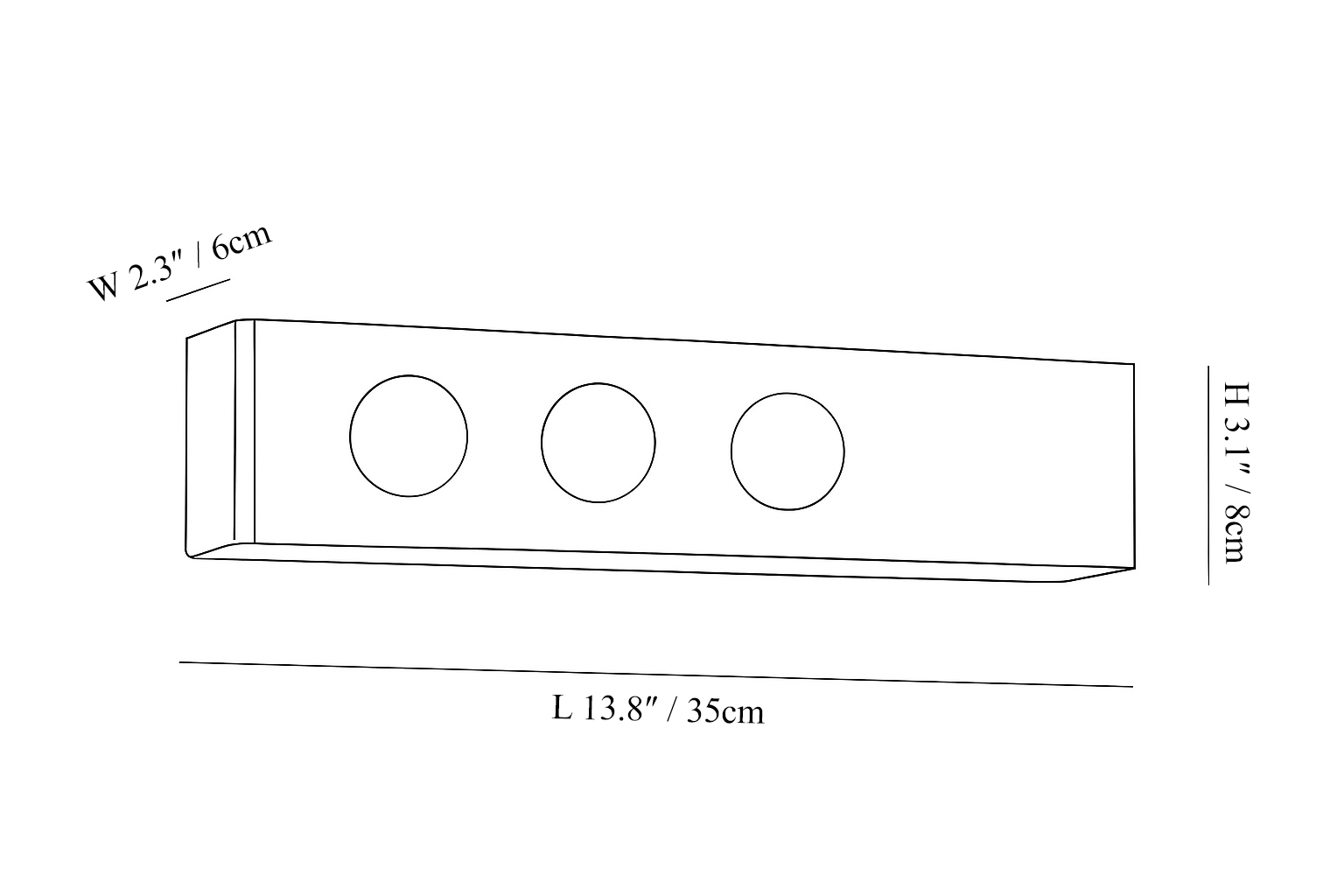 L 13.8″ x W 2.3″ x H 3.1″ / L 35cm x W 6cm x H 8cm