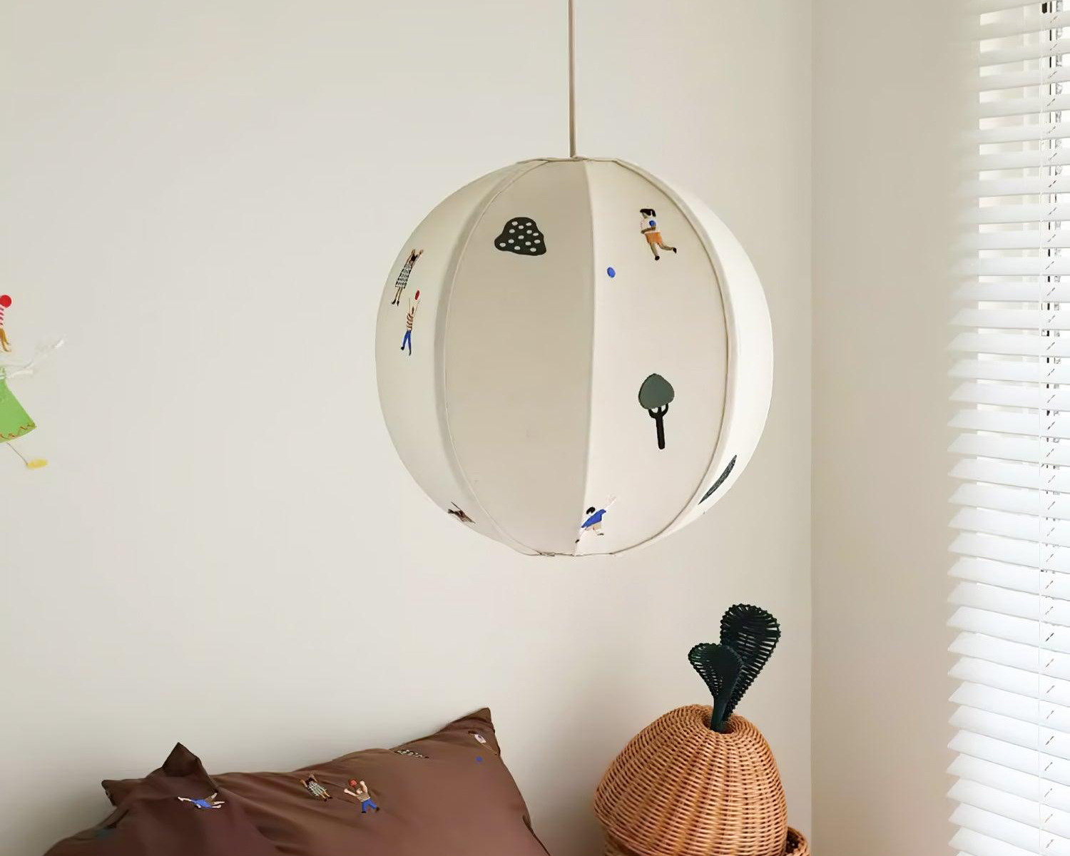 The Park Textile Pendant offers a contemporary twist on classic rice paper lamps, featuring lively park-day scenes embroidered in vivid colors on a 100% cotton shade. When lit, the detailed embroidery comes to life, casting a warm and whimsical glow. With its clean lines and cheerful design, this lampshade brings charm and joy to both children and adults alike, making it a delightful addition to any home.