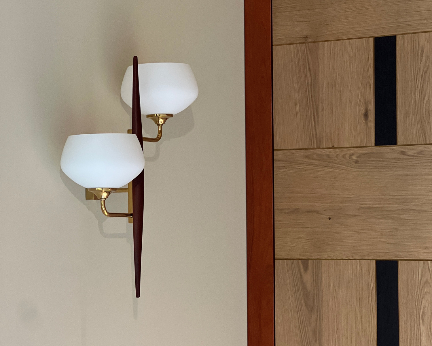 Inspired by the quiet elegance of branching forms, the Petite Branch Wall Sconce features a slender wooden spine with two gently curved brass arms. Frosted glass shades sit like delicate blossoms, diffusing a soft and inviting glow.