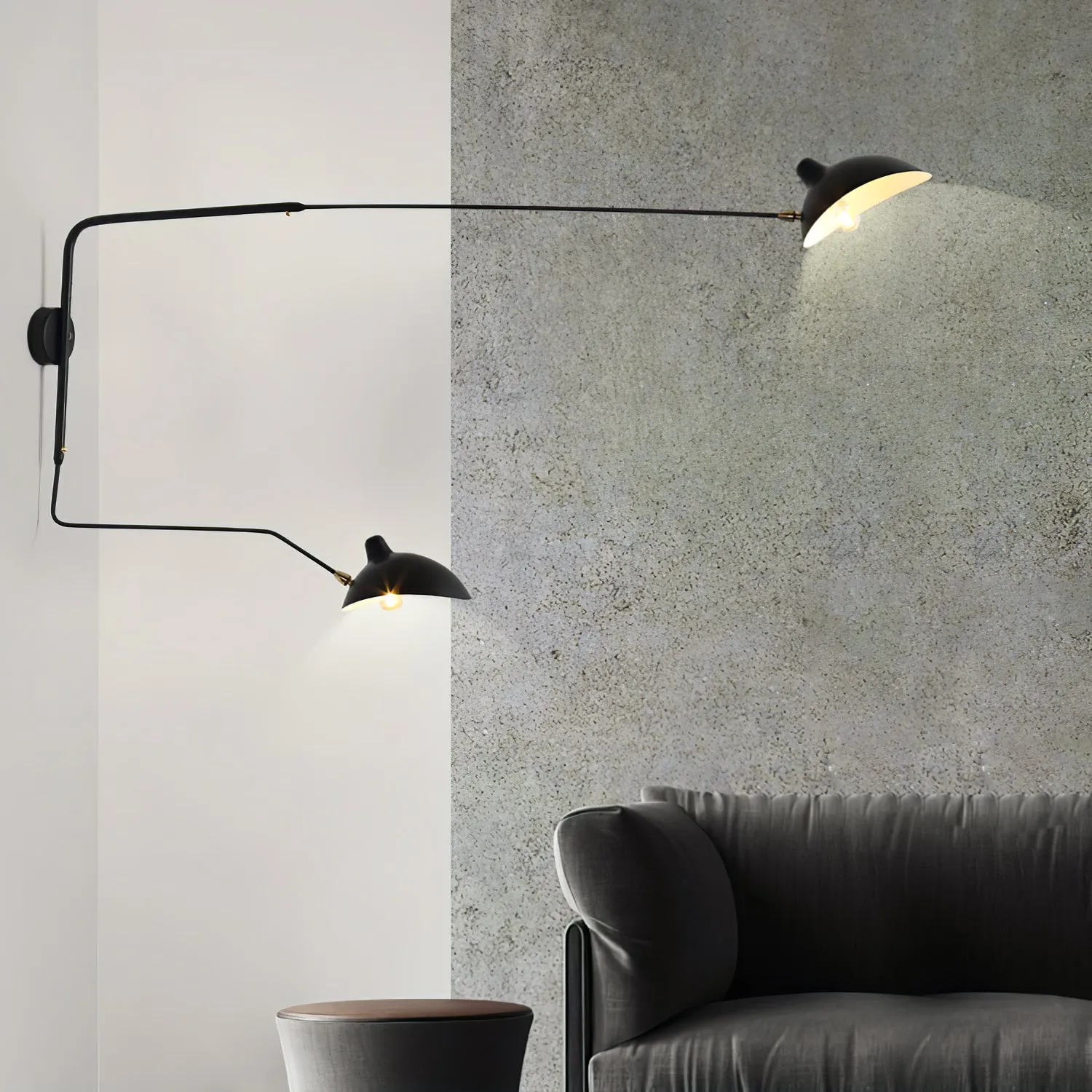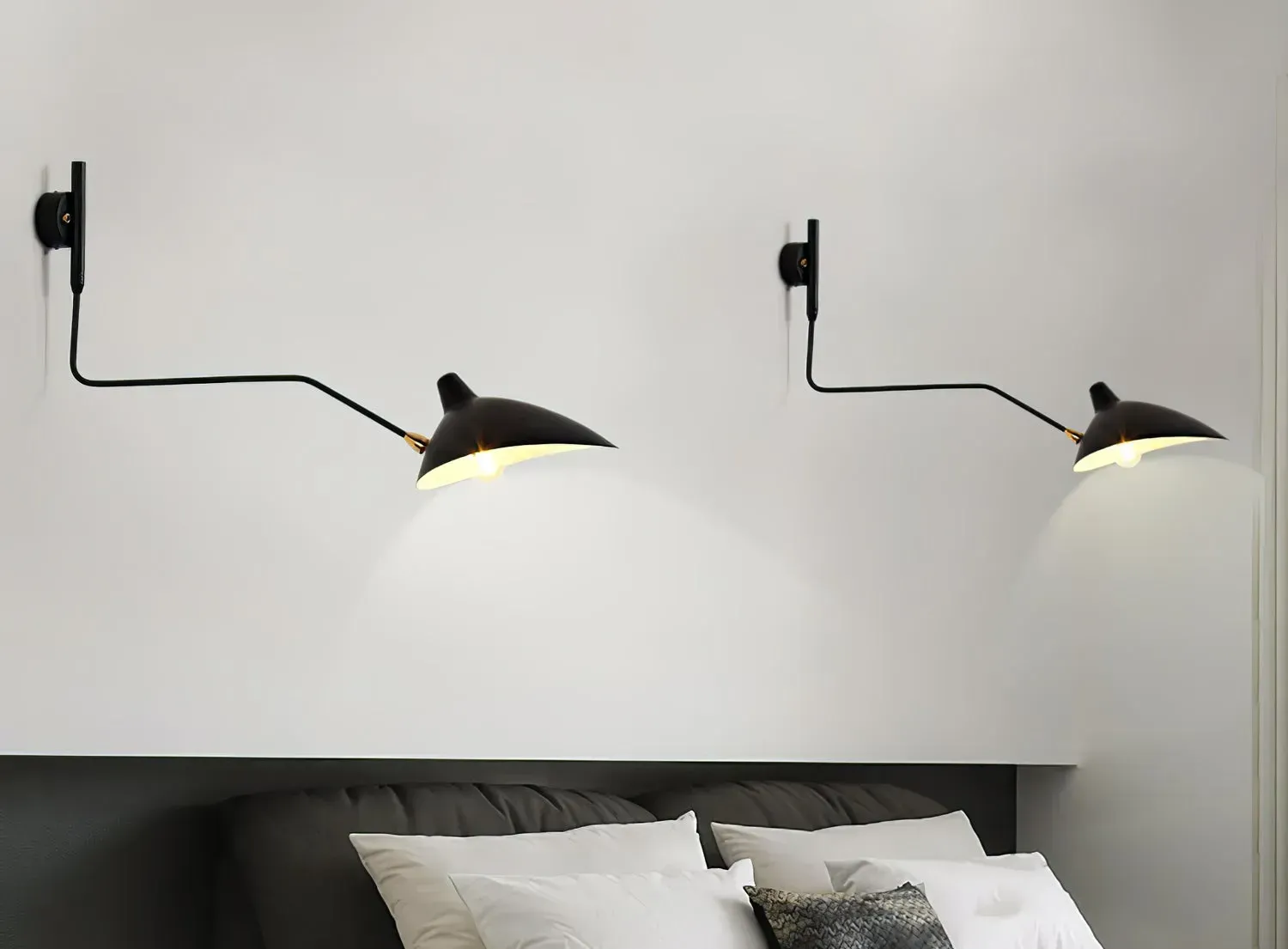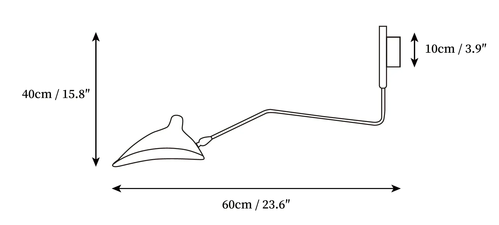Mouille's designs in the 1950s were a response to the bulkier Italian designs prevalent at the time. He aimed to craft modern lighting fixtures characterized by delicate lines and striking aesthetics. The One-Arm wall sconce, one of Serge's most adaptable lamps, features an arm that extends either 47 inches or 55 inches (depending on the size chosen), allowing light to be directed to various parts of the room. Additionally, the shade can rotate independently, adding further versatility.