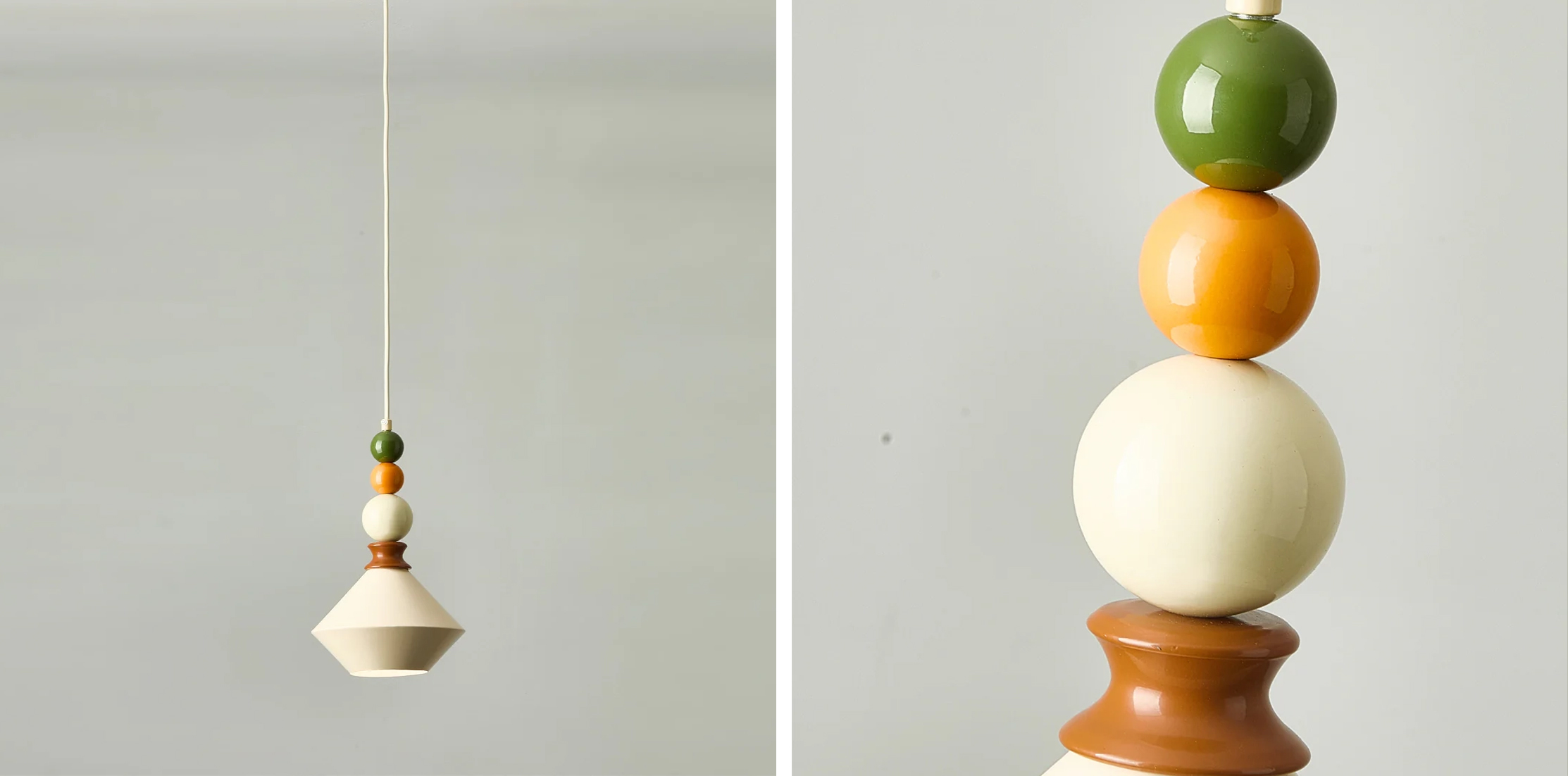 Suspended with a slender cord, it brings a sense of movement and charm, perfect for dining areas, creative studios, or any space that embraces joyful modern living.