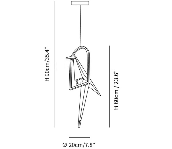 19.7″ Adjustable hanging height rod. Can be extended upon request.