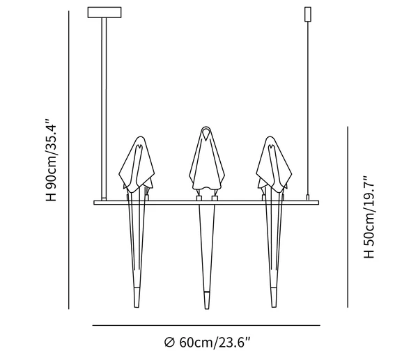 3heads A ∅ 23.6″ x H 35.4″ / Dia 60cm x H 90cm (Power:~24W)