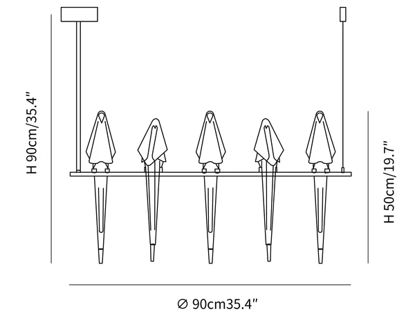 5heads ∅ 35.4″ x H 35.4″ / Dia 90cm x H 90cm (Power:~40W)