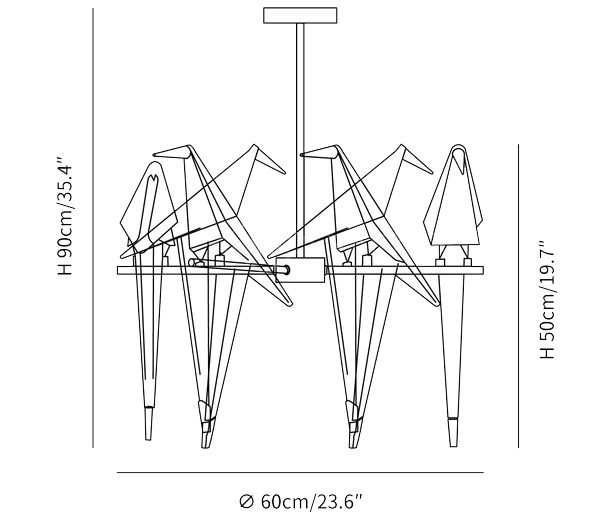 6heads ∅ 23.6″ x H 35.4″ / Dia 60cm x H 90cm (Power:~48W)