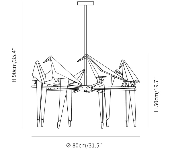 8heads ∅ 31.5″ x H 35.4″ / Dia 80cm x H 90cm (Power:~64W)