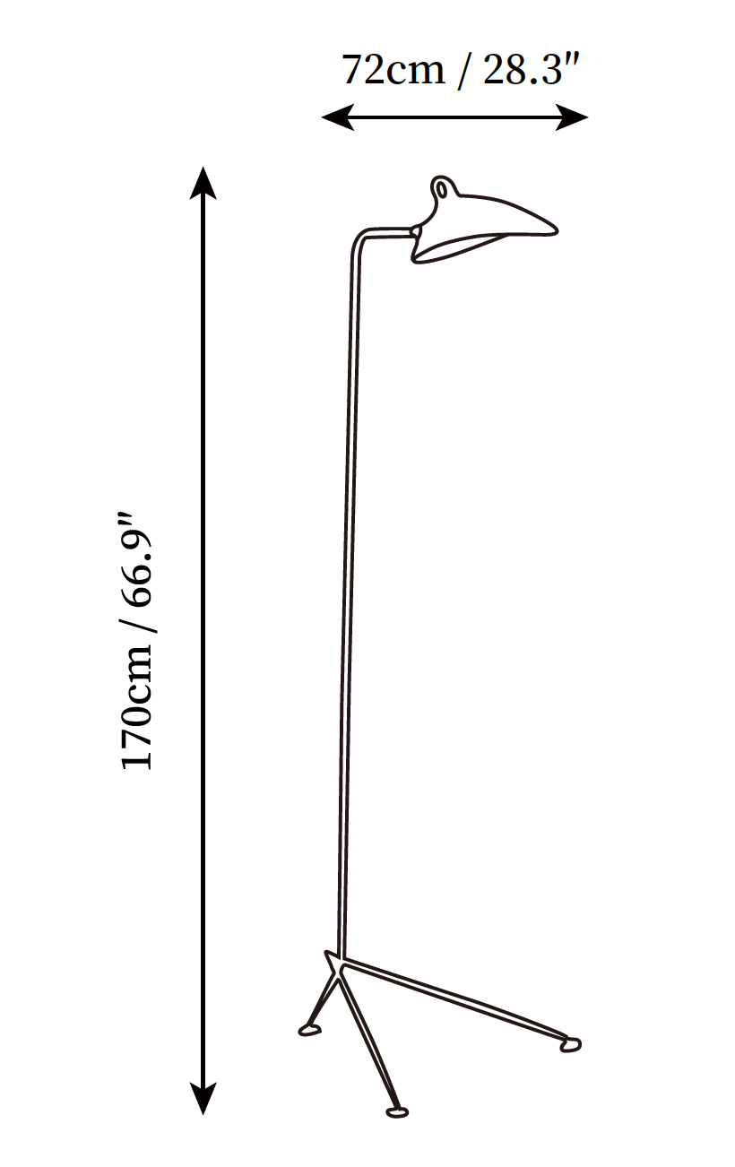 Mouille designed his angular, insect-like lights as 'a reaction to the Italian models that were beginning to invade the market in 1950,' which he criticized for being 'too complicated.' His large-scale Three-Arm Floor Lamp (1952) has a kinetic, sculptural aesthetic that evokes a sense of movement in space. All of the arms can be rotated in various directions, allowing for ample, well-directed lighting for any task.