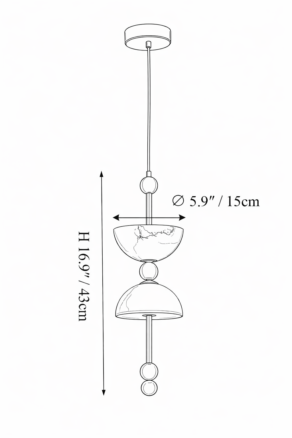 Crafted from imported Spanish alabaster, each pendant features natural veining that softly diffuses light, creating a warm and refined ambiance. The sculptural vertical form is paired with brushed, electroplated stainless steel for a modern, elegant contrast. Durable, easy to maintain, and designed to age beautifully over time.