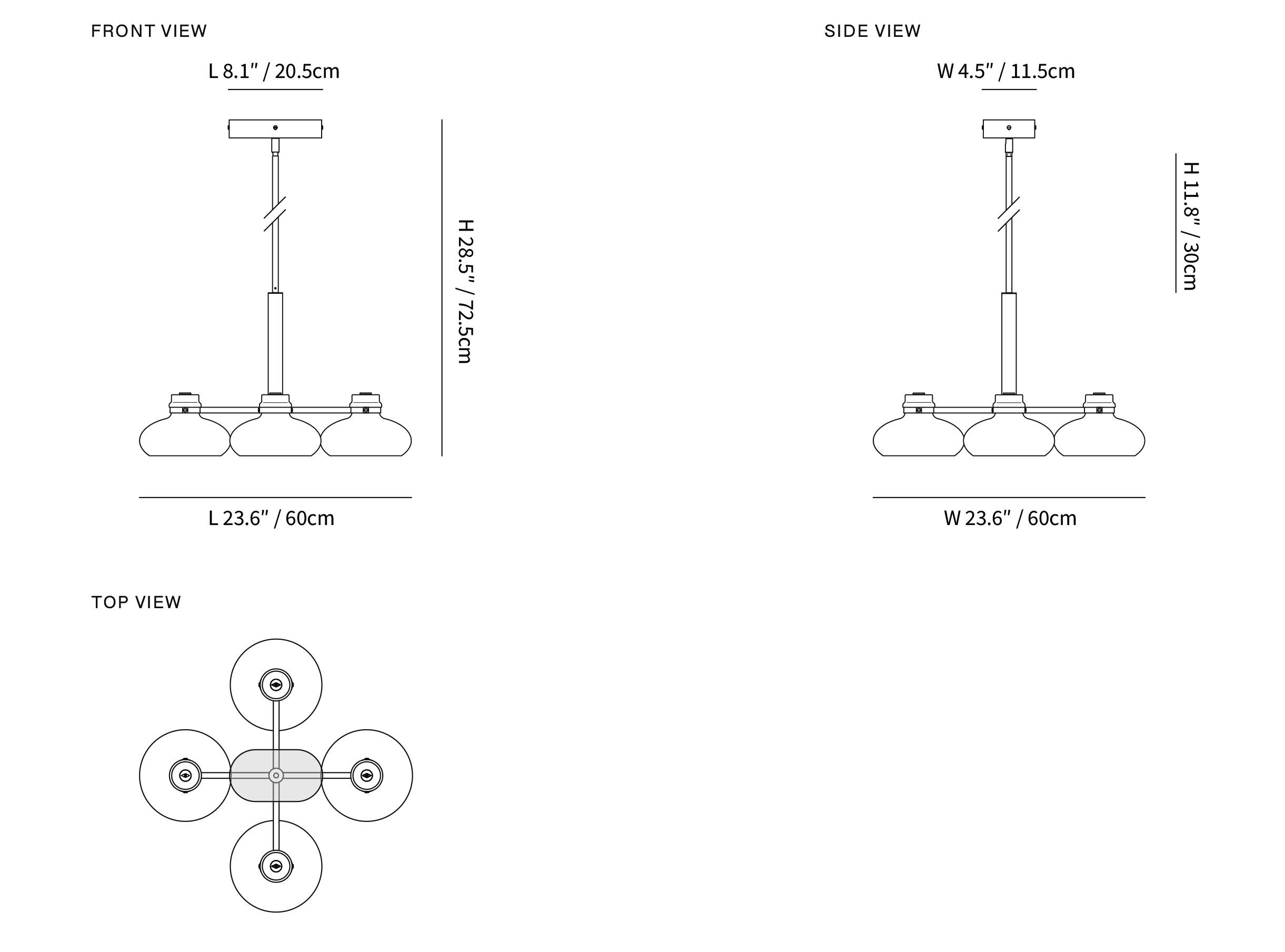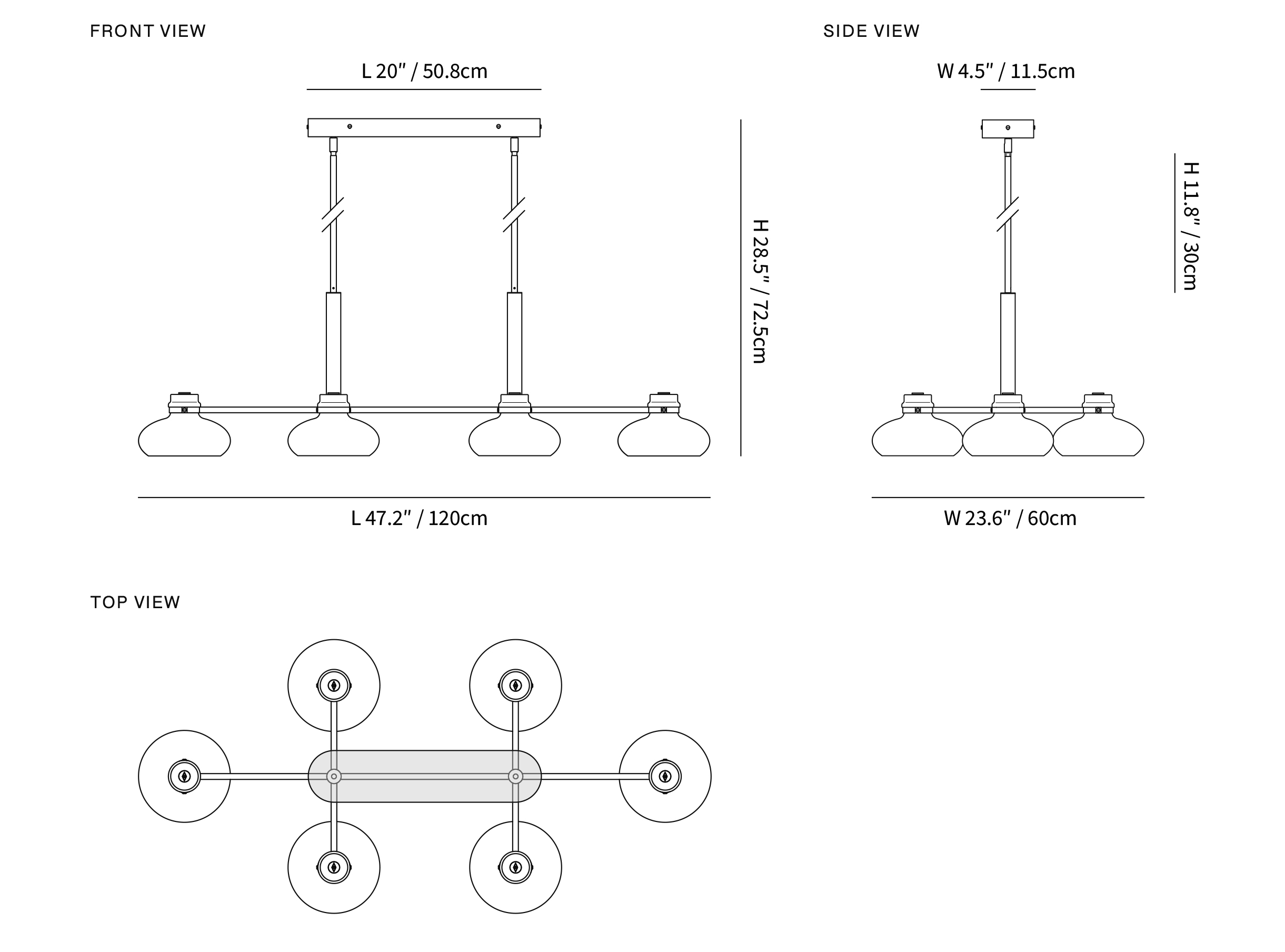 4-Lights Size: L 60cm x W 60cm x H 72.5cm / L 23.6″ x W 23.6″ x H 28.5″