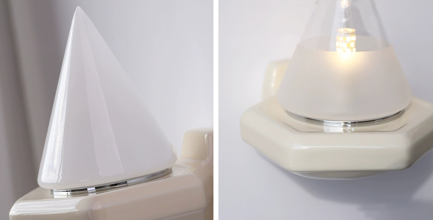The cone-shaped shade diffuses a warm, quiet glow that feels close rather than bright. Nothing sharp, nothing loud, just a steady presence that settles into the room. Whether lit alone or paired along a wall, it creates an atmosphere meant to be felt, not noticed.