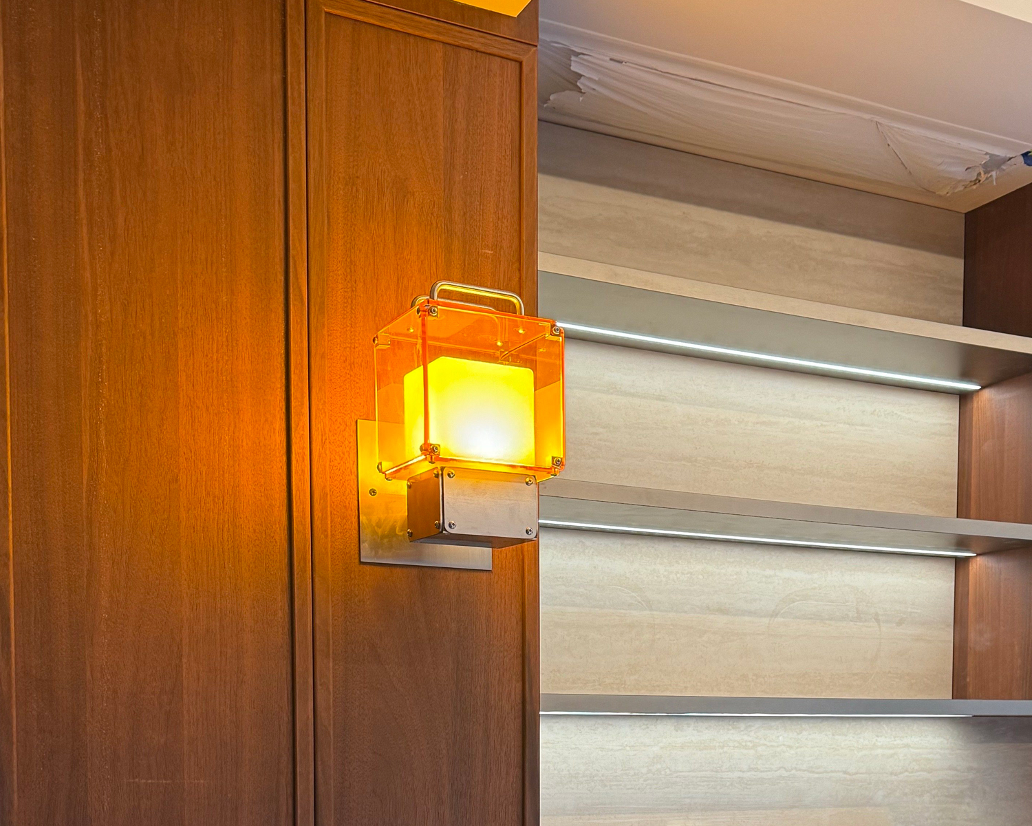 Amber Core pairs warm orange acrylic with a clean metal structure, creating a soft, radiant light that instantly lifts the mood of a space.