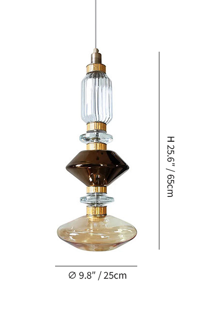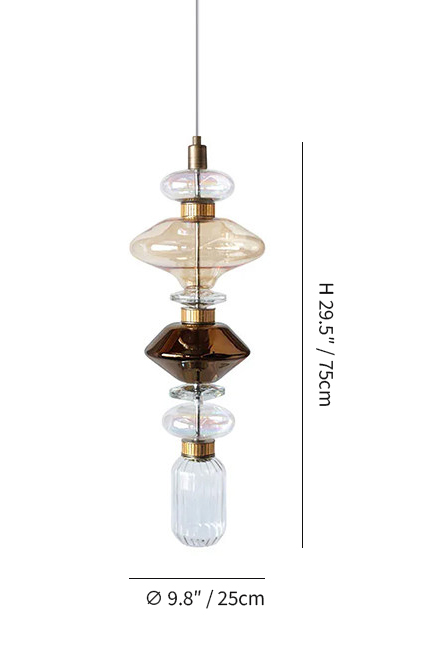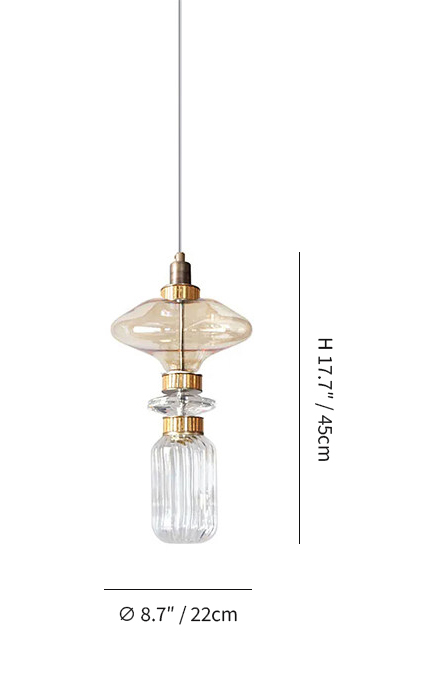 Each piece feels individually shaped, yet harmonized as a whole. The contrast between transparency and warmth brings depth without heaviness, making the fixture feel light and composed.