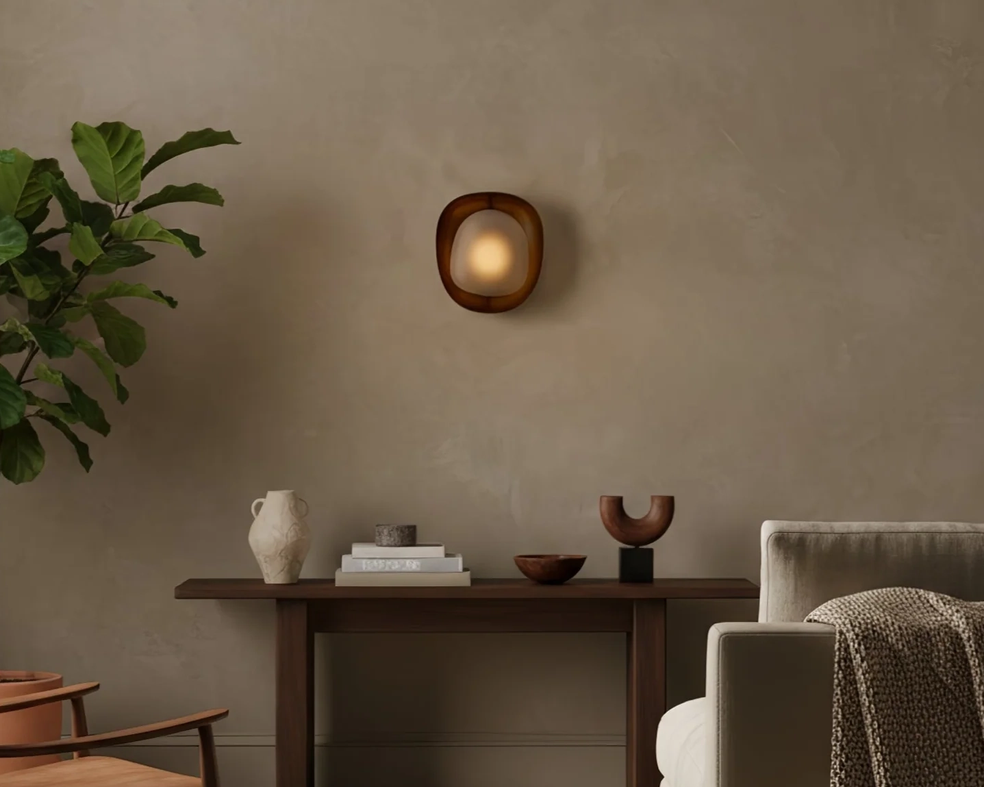 The Amorphous Wall Lamp embodies quiet elegance through its smooth, organic form. Its sculptural frame, finished in a rich, smoky bronze tone, gently cradles a frosted inner diffuser that radiates a soft, ambient glow. The interplay between the darker outer shell and the warm inner light creates a sense of depth and calm, making it an ideal piece for contemporary interiors. Minimal yet expressive, it adds a subtle artistic presence to any wall it graces.