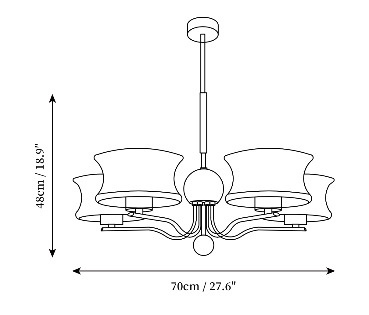 5 heads ∅ 27.6″ x H 18.9″ / Dia 70cm x H 48cm