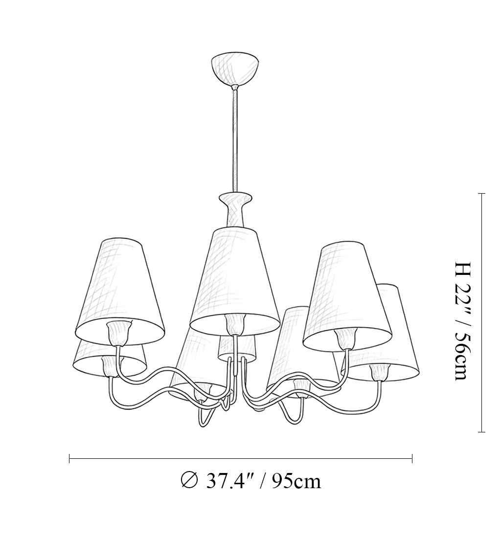 7 heads: ∅ 37.4″ x H 22″ / Dia 95cm x H 56cm