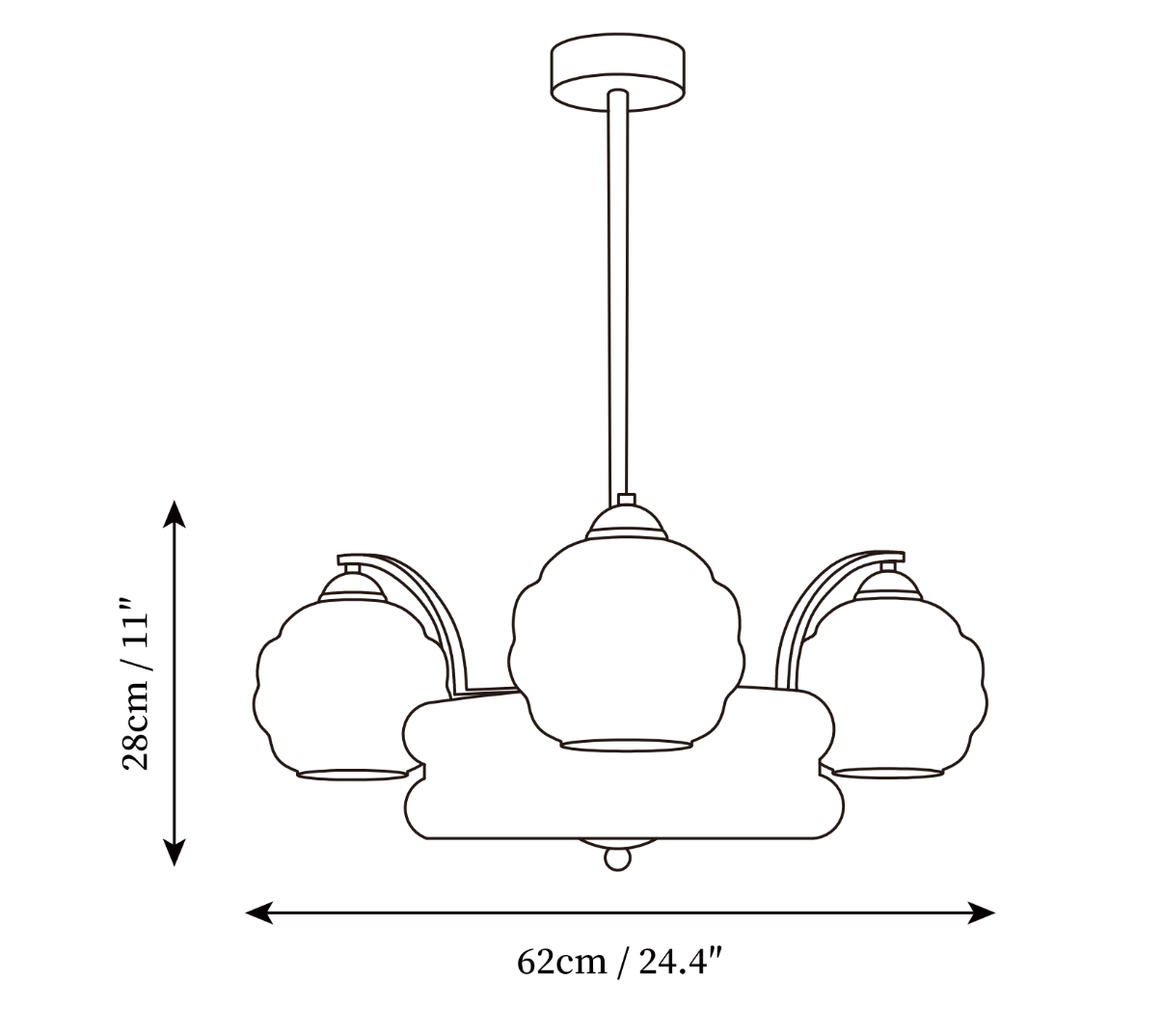 20+30cm(7.9″+11.8″) Adjustable hanging height rod. Can be extended upon request.