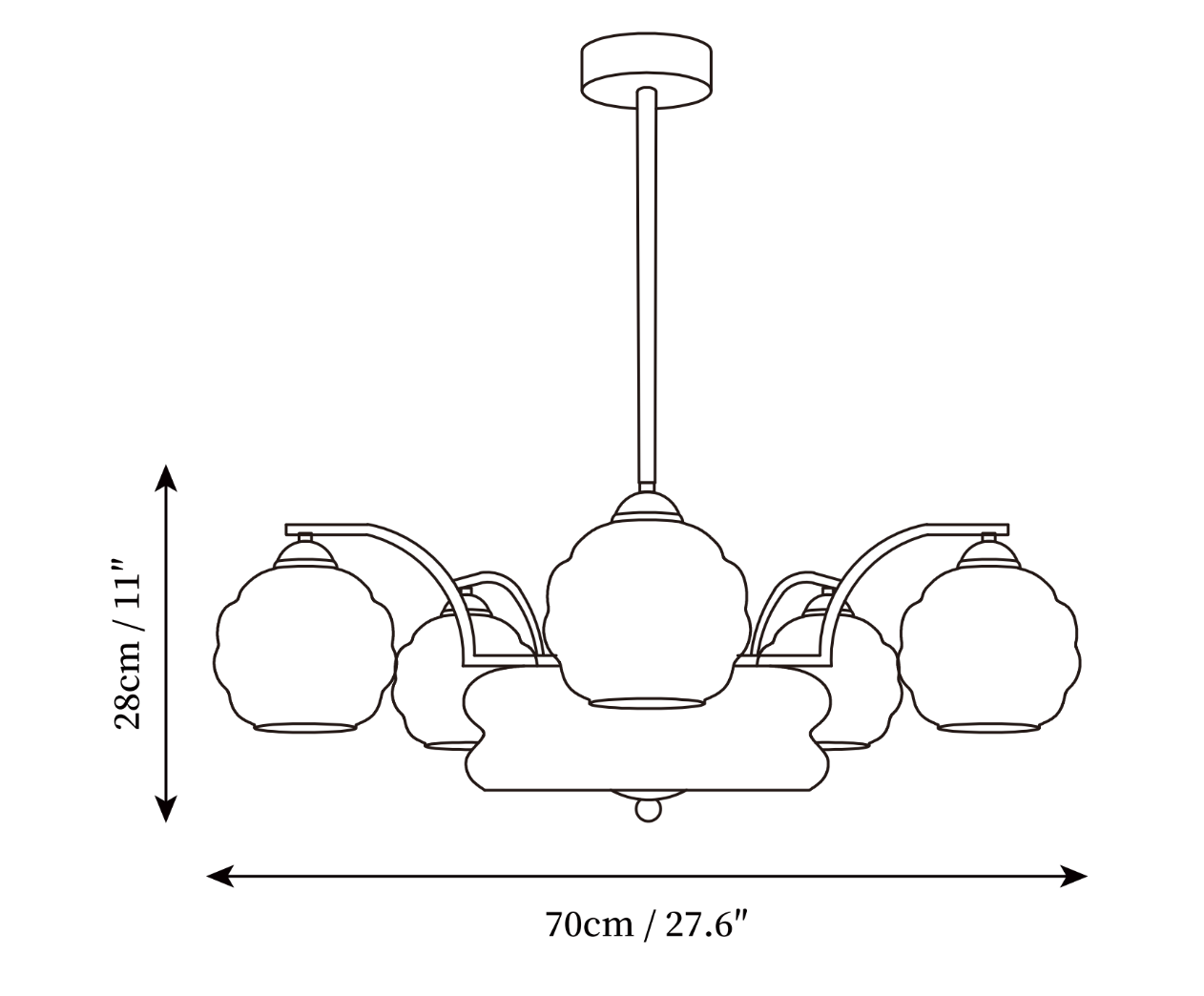 5+1 heads Size: Dia 70cm x H 28cm / ∅ 27.6″ x H 11″