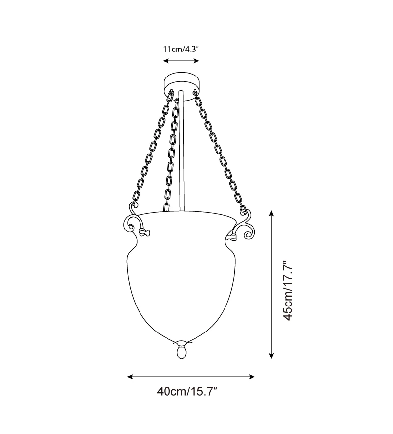 Note: Hanging Rod 50+20cm=70cm / 27.6″. The length of the suspension chain can be changed as required.