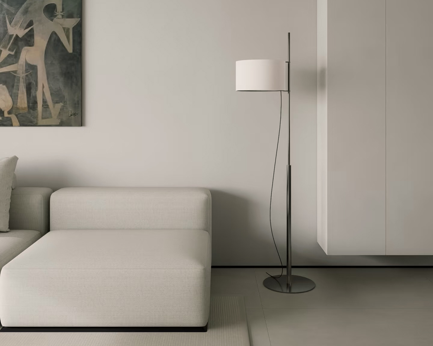 Elegant and architectural, the Axis Floor Lamp features a slender metal structure paired with a linen drum shade that casts a warm, even glow. Its clean vertical design creates a sense of height and serenity, ideal for living rooms or reading corners. A statement of simplicity and proportion, it blends functionality with timeless elegance.