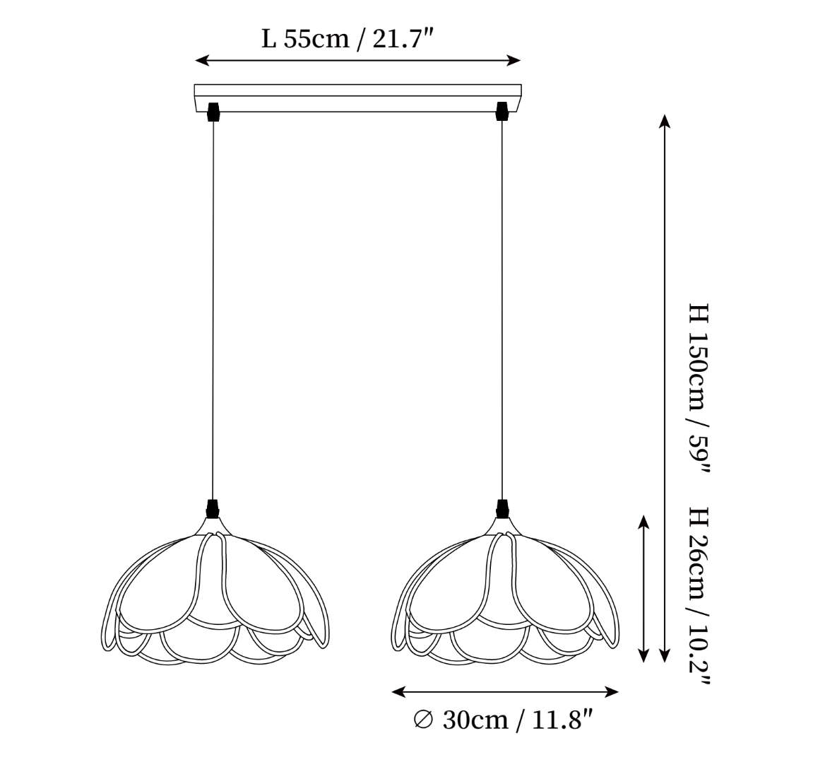 59″ Adjustable hanging height cable, which can be lengthened as required.