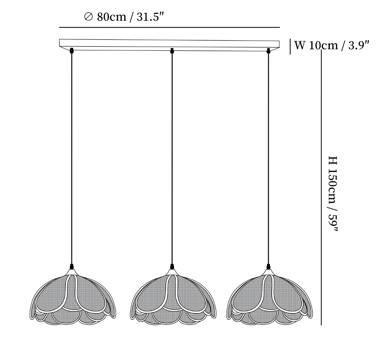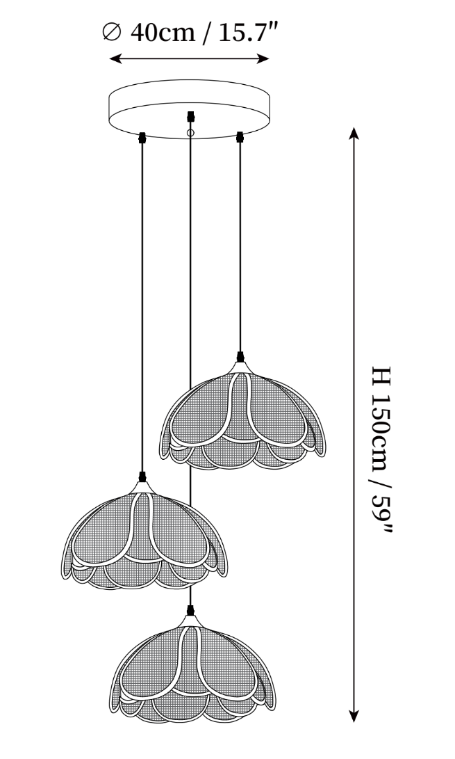3 Heads Round Canopy: Dia 40cm x H 150cm / ∅ 15.7″ x H 59″