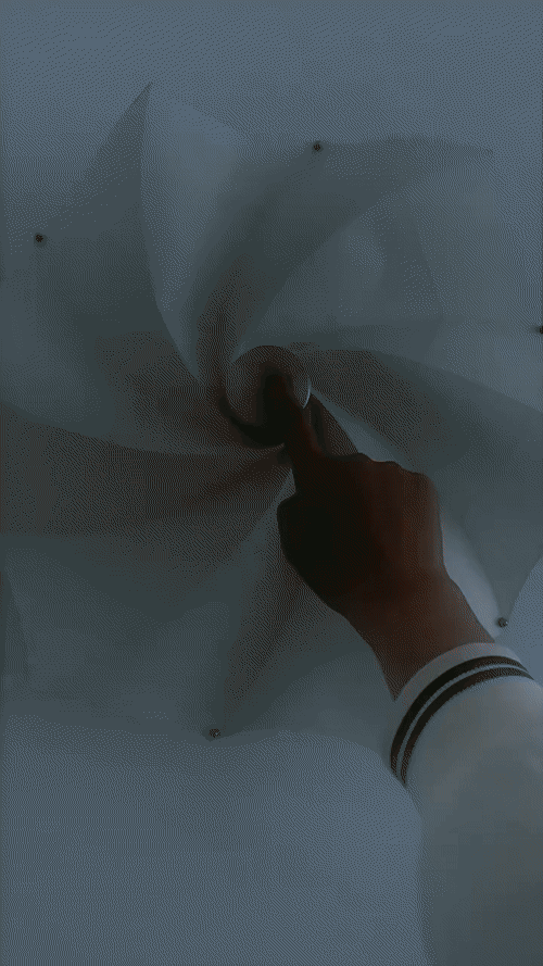 Bloom Wall Lamp blends floral elegance with interactive design. Linen petals surround a central metal knob, letting you adjust both light and petal movement. Functional yet artistic, it adds warmth and joy to any living space.