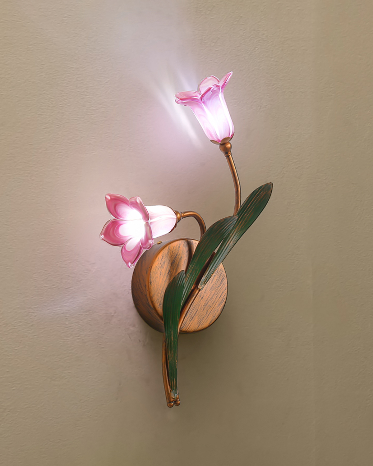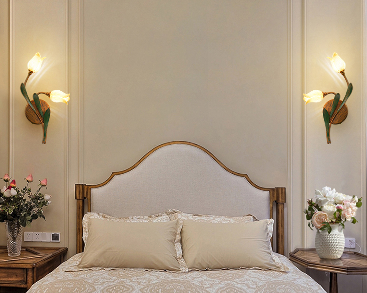 Bring timeless elegance to your home with the Blooming Tulip Wall Sconce, where hand-blown glass tulip shades and vintage metalwork create a warm, romantic glow.